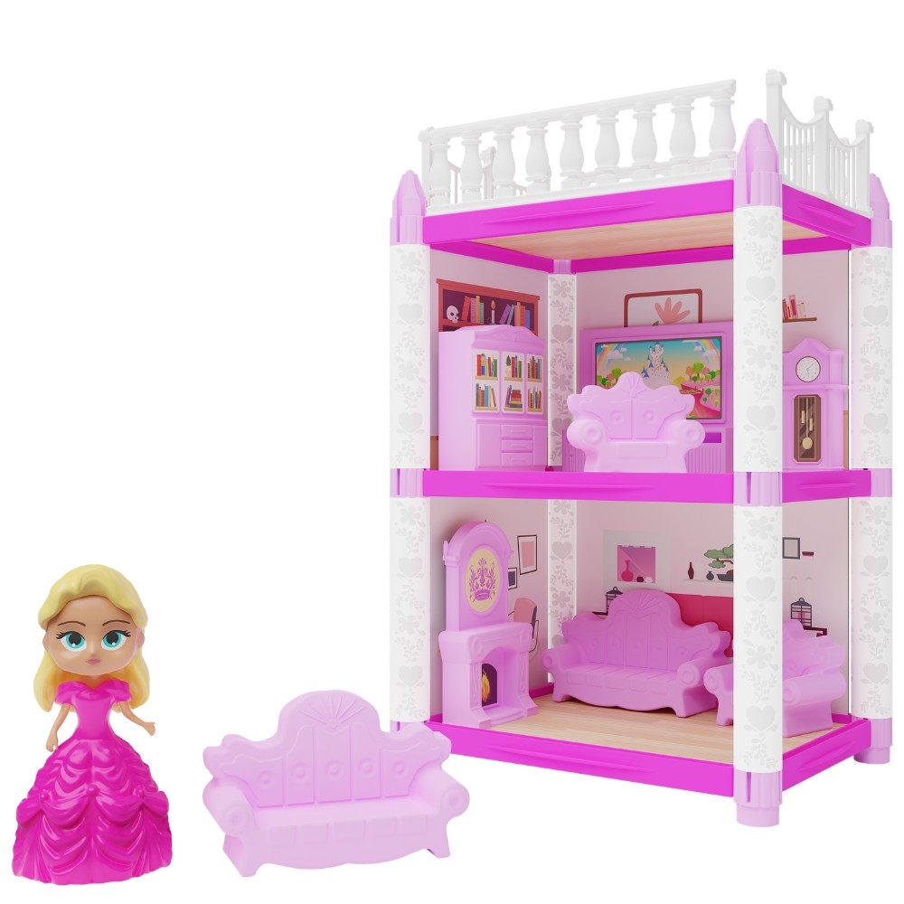SALA DE TV E BIBLIOTECA DA PRINCESA GGB BRINQUEDOS 56 PEÇAS CÔMODO CASINHA MENINA 8 MÓVEIS BONECA