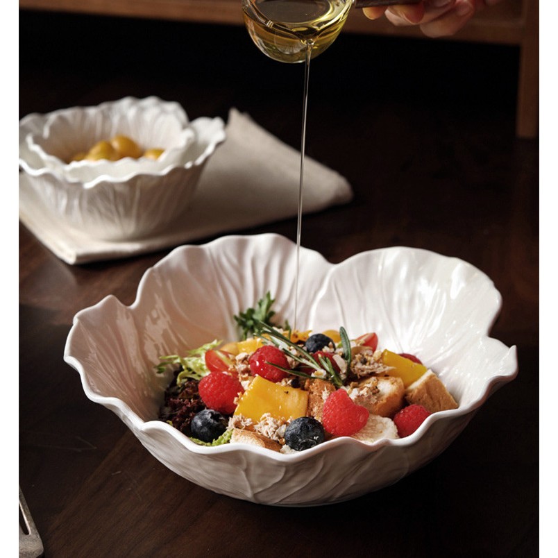 Saladeira Branco de Cerâmica de Forma Floral Porcelana Grande 23x7cm Para Servir Mesa Posta