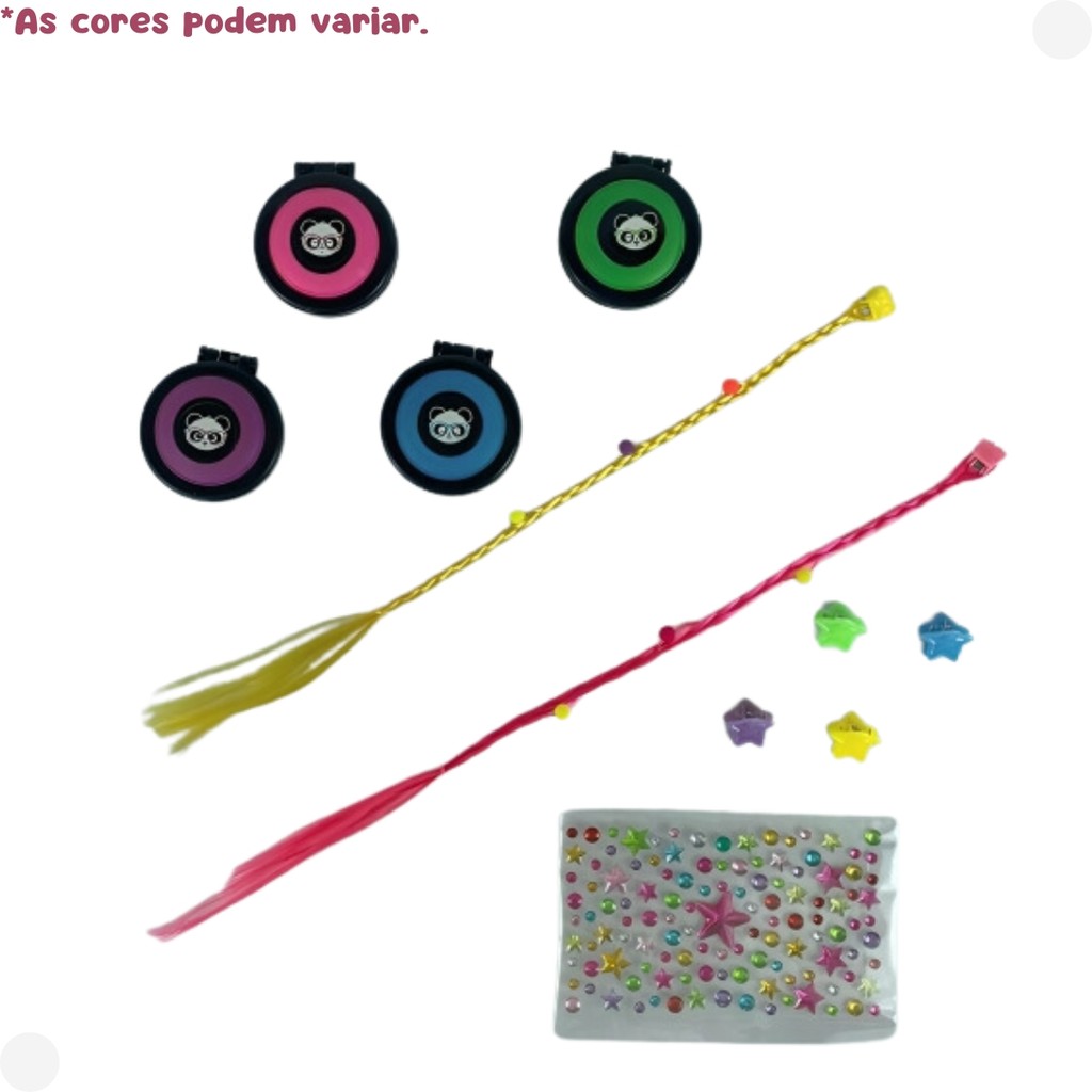 DESCRIÇÃO DO PRODUTO Transforme o visual com o Luluca Salão de Beleza da Fun Divirta-se! Agora você pode criar o efeito “Tie Die” nos cabelos em casa com cores neon incríveis: Azul Mágico, Laranja Flame, Magenta Mania e Limão Light. O kit contém tudo que você precisa para um look fabuloso: 4 cremes para colorir o cabelo, 1 frasco de gel de cabelo com glitter, 2 folhas de estêncil, 1 bandeja de mistura, 1 pincel de mistura, 1 pincel para aplicação, 1 par de luvas sem látex e 1 manual de instruções. Solte sua criatividade e experimente diversos estilos com esse conjunto completo! Idade recomendada: A partir de 8 anos. Selo Inmetro: 02115-000. CARACTERÍSTICAS TÉCNICAS: Conteúdo da Embalagem: 4 cremes para colorir o cabelo, 1 frasco de gel de cabelo com glitter, 2 folhas de estêncil, 1 bandeja, 1 pincel de mistura, 1 pincel para aplicação, 1 par de luvas e Manual de instruções. Dimensões Aproximadas do Produto: 6cm x 29cm x 31cm (Altura x Largura x Comprimento/Profundidade). Dimensões Aproximadas da Embalagem: 6cm x 29cm x 31cm (Altura x Largura x Comprimento/Profundidade). Material/Composição: Plástico. Idade Mínima Recomendada: A partir de 8 anos Participantes: A partir de 1 pessoa Alimentação: Não se aplica Marca: Fun Referência: F0108-0 Outras informações: As cores podem variar entre as imagens mostradas acima e o produto. Imagens meramente ilustrativas. Aviso: As informações e imagens divulgadas são de total responsabilidade do fabricante/fornecedor. Produto lacrado e disponível a pronta entrega para todo Brasil! APROVADO PELO INMETRO