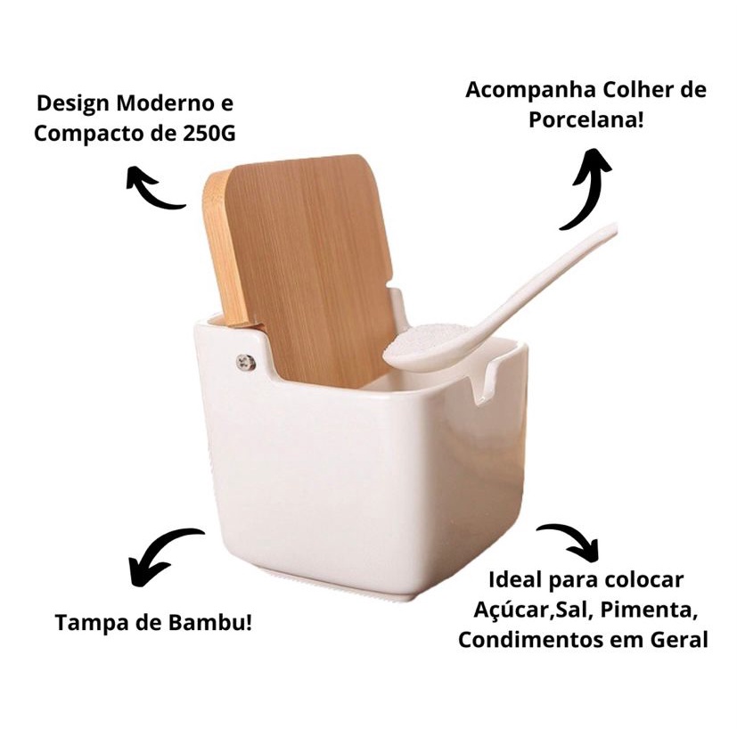 | ✅Saleiro 2442 Cerâmica Premium De Mesa Pequeno Colher Tampa Bambu 2... este produto | R$ 39,99 | — | 4.8/5 | — |