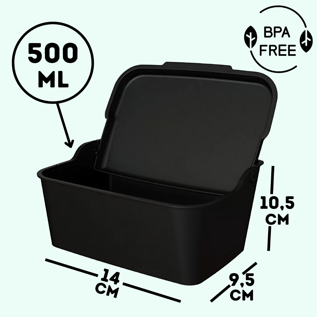 Saleiro de Mesa 500ml com Tampa de Abertura Fácil Cor Preto Branco e Bordo Organizador Lavável