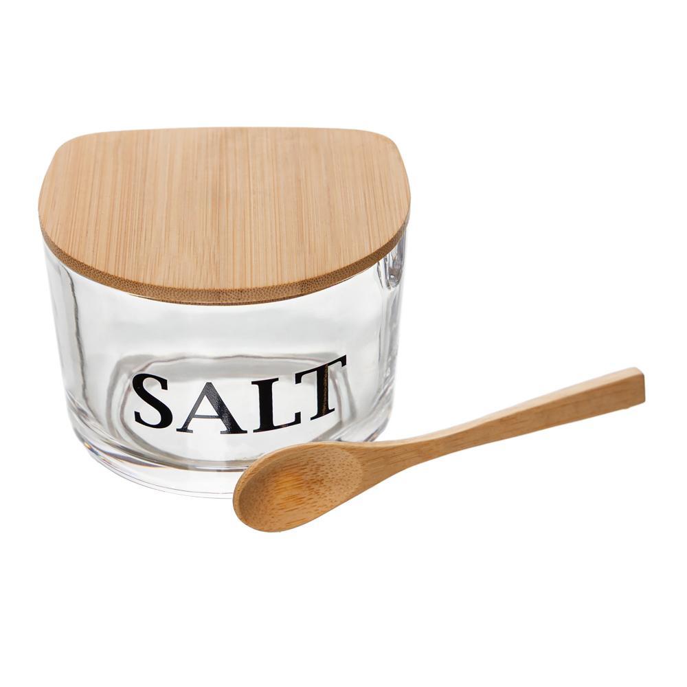 Saleiro de Vidro com Colher e Tampa de Bambu Basic