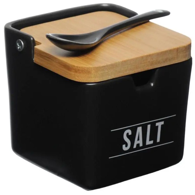 Saleiro Salt Manhattan Tampa De Bambu E Colher Preto 240ml