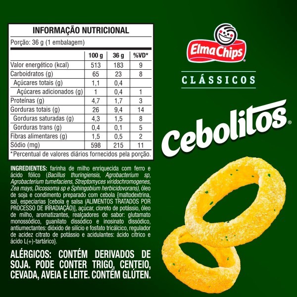 Salgadinho Cebolitos 33g Elma Chips