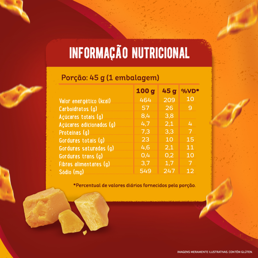 Salgadinho De Queijo Cheez-It® Snap'D Nacho Explosion 45G "O Salgadinho de Queijo Cheez-It® Snap'd Nacho Explosion de 45g é uma deliciosa escolha para quem busca um lanche com sabor delicioso e crocância irresistível. Elaborado com queijo e um sabor intenso a nacho, este snack é assado até alcançar uma textura fina e crocante que proporciona uma explosão de sabor a cada mordida. O sabor do nacho se mistura perfeitamente com a crocância do queijo, tornando cada pedaço uma experiência deliciosa. Ideal para lanches rápidos, piqueniques ou festas, o Cheez-It® Snap'd Nacho Explosion é prático e fácil de transportar. Ele cabe perfeitamente em mochilas, garantindo que você tenha sempre à disposição um snack saboroso e crocante, não importa onde esteja. Aproveite a explosão de sabor e a conveniência desse lanche, que é perfeito para qualquer momento do dia."