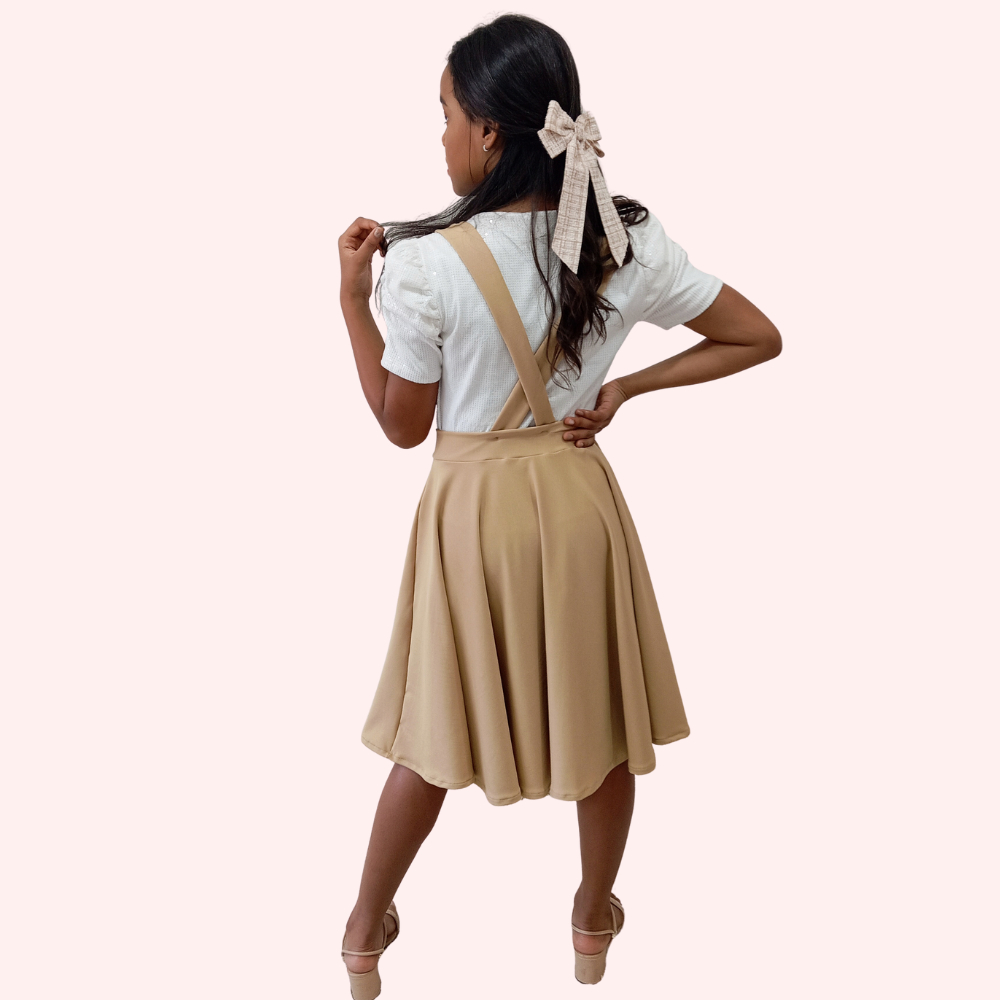 GLAMOUR KIDS Conforto, estilo e movimento em uma peça só! Essa salopete infantil é feita em malha Suplex Premium, com toque macio e caimento impecável. O modelo godê total (rodado) garante aquele charme especial, enquanto o cós sem elástico se ajusta perfeitamente ao corpo. Ideal para brincar, passear ou arrasar em ocasiões especiais! TABELA DE MEDIDAS: 02 - Comprimento 32cm - Cintura 44cm 04 - Comprimento 35cm - Cintura 46cm 06 - Comprimento 37cm - Cintura 50cm 08 - Comprimento 42cm - Cintura 56cm 10 - Comprimento 46cm - Cintura 58cm 12 - Comprimento 50cm - Cintura 60cm 14 - Comprimento 51cm - Cintura 64cm 16 - Comprimento 54cm - Cintura 66cm 🧵 FICHA TÉCNICA * Material: Malha Suplex Premium * Composição: 86% poliéster, 14% elastano * Contém elastano: Sim * Forro: Não * Bolsos: Não * Transparência: Não fica transparente * Observação: As medidas da tabela referem-se às saias, não ao corpo. RECOMENDAÇÕES * As medidas informadas são da peça, não do corpo. * Escolha o tamanho habitual — o tecido com elastano se ajusta bem. * Compare suas medidas com a tabela antes de finalizar a compra. * Considere uma margem de erro de 2 a 3 cm devido aos métodos de medição. * As cores podem variar conforme o monitor. 🎁 Ofertas exclusivas te esperam! Garanta já essa peça linda e surpreenda sua pequena com estilo e conforto.