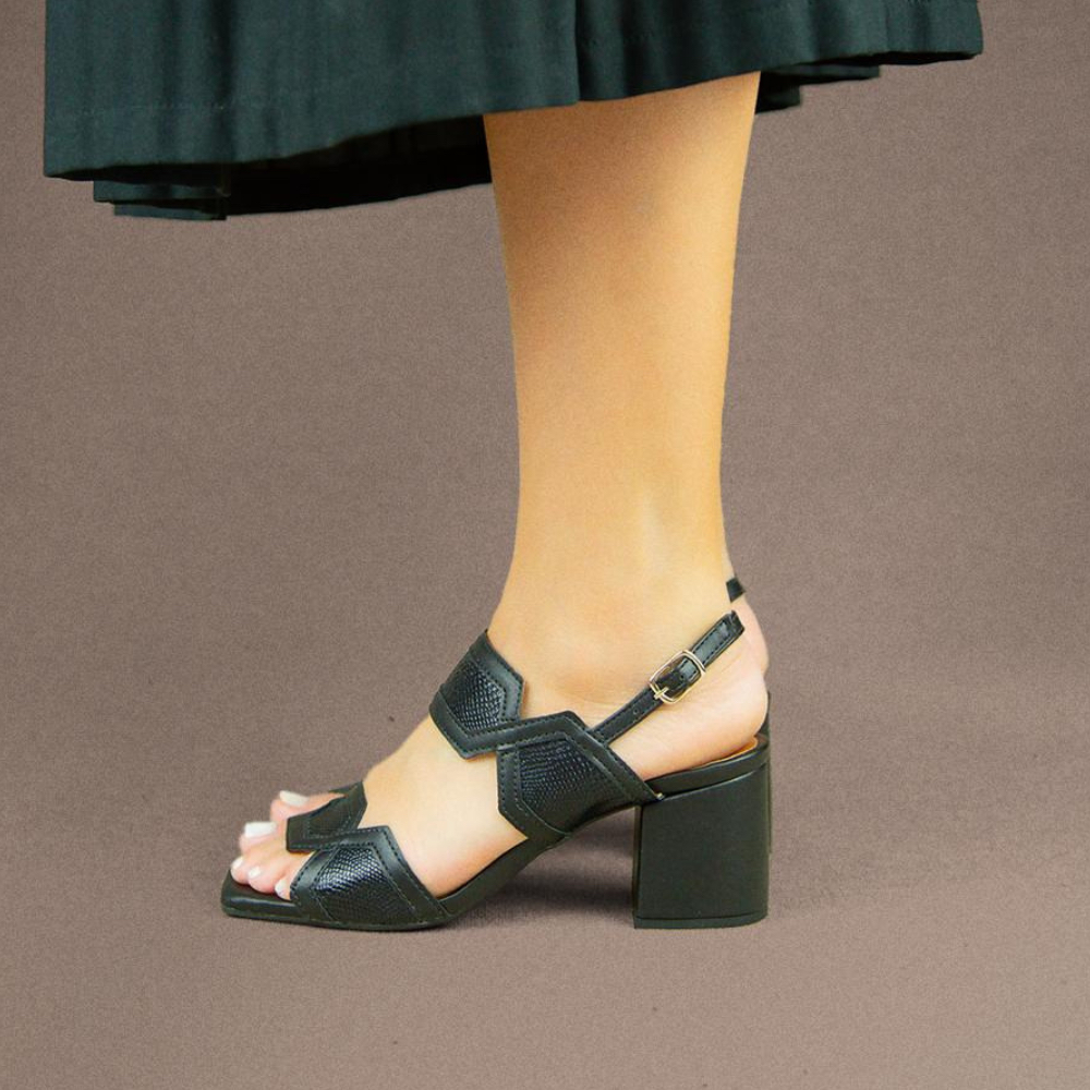 Salto Bloco Sandália Feminina Chique com Fivela Preta Lançamento Elegante Casual