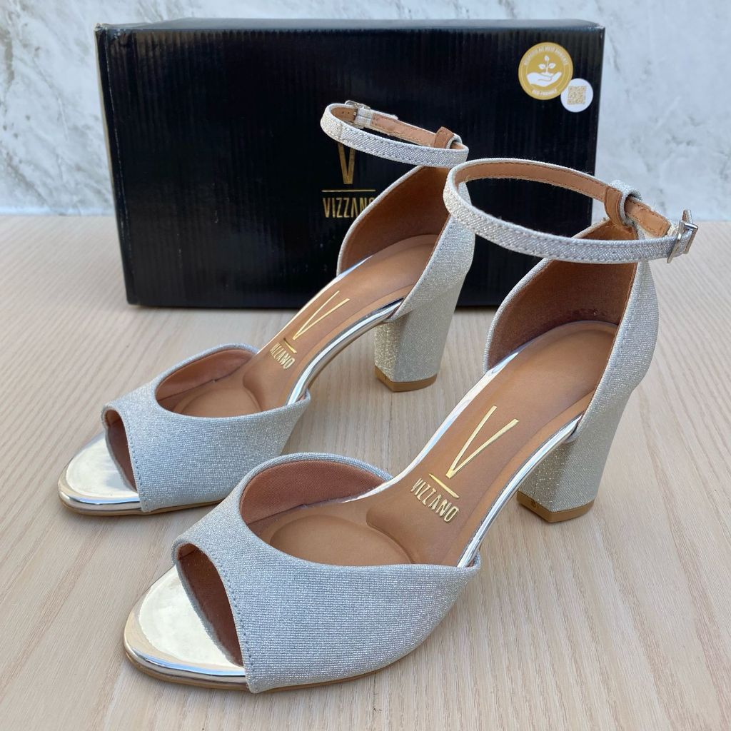 Salto Sandália Feminino Vizzano Brilho Glitter Glamour Confortável Festa