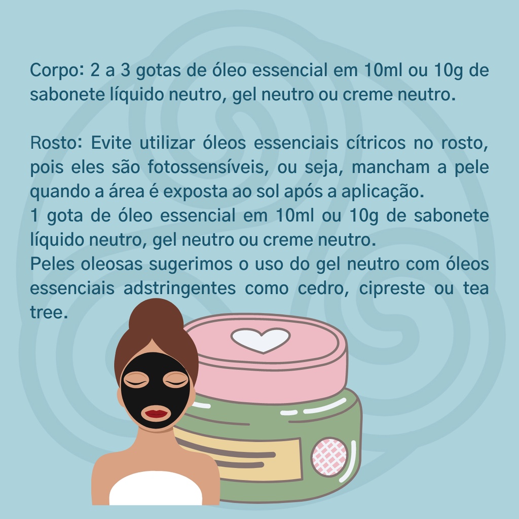 ÓLEO ESSENCIAL DE SÁLVIA ESCLARÉIA 5ML 100% PURO E NATURALO óleo da percepção.Aumenta a intuição e amplia a sensibilidade. Trata a estética da pele e é muito utilizada para dores.Erva sagrada para os romanos. Salvare: Curar. Clarus: Clareza. Na antiguidade era chamada de ‘Olho de Cristo’.Propriedades físicas: Antissudorífico1, faz com que as glândulas responsáveis pelo suor diminuam a produção. Adstringente, trata pele e cabelos oleosos. Cicatrizante e anti-inflamatório, combate acne, furúnculo, dermatites e eczema. É muito utilizado para o controle da dor, desde simples dores de cabeça até as dores de parto*. Usado também como equilibrador do sistema hormonal feminino, regulando menstruação, TPM, menopausa e cólicas menstruais*.Propriedades emocionais*: Antidepressivo1. Trata ansiedade, estresse e tensão.Propriedades vibracionais*: Tranquilizante, promove clareza mental, liberta a culpa, desenvolve força e confiança interior. Utilizado por aromaterapeutas em casos de traumas de infância, histeria, pessimismo e hiperatividade.Precauções: Contraindicado para gestantes.Óleo essencial de Sálvia Esclaréia, 5mlNome científico: Sálvia sclareaOrigem: RússiaExtração: Destilação das flores e folhas