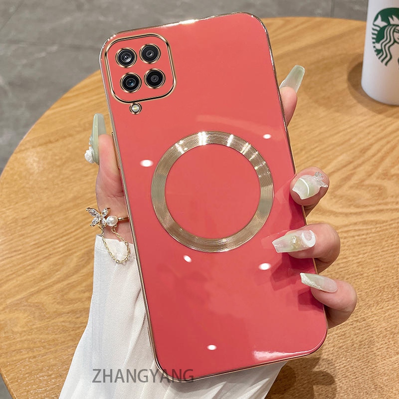 Samsung A12 M12 M12 a22 4G a22 5G M22 Estojo De silicone Galvanizado TPU Com Simples Sucção Magnética E Lente anti-Queda