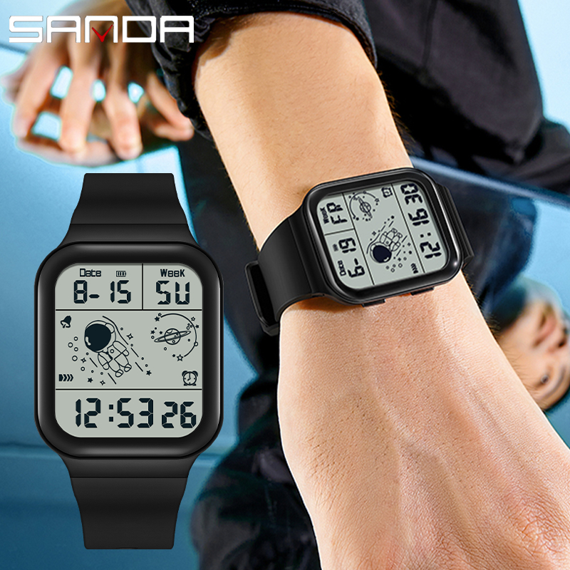 Sanda 6052 Display LED Relógio Digital Quadrado Astronauta Design Masculino Feminino Tendência Da Moda Juventude Eletrôn