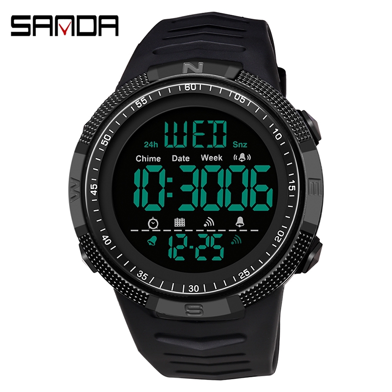 Descrição do produto em inglês após português Nome da marca: SANDA Modelo:6014/1 Relógio original SANDA Tipo de Projeto: Relógio de Quartz Característica:Calendário Completo,Resistente de Chock, Relógio de Parede, Display deLED, Data de Auto,Exibição de semana,Resistente de Água,Luz de Contagem,Cronógrafo,Swim,Alarm,Luminoso Movimento: Quartzo Estilo: casual da moda, esportes, militares, negócios, luxo 100% etiqueta nova e alta qualidade 5ATM/50M à prova d'água (suporta chuveiro de água fria e natação, não opera o relógio quando suba água, não suporta água quente); Material da caixa: Plástico Material da cinta: Cinta PU Especificações (aproximada): Diâmetro do Mostrador: 49mm Espessura da caixa: 15mm Largura de banda: 22mm Comprimento da Pulseira: 25mm Incluído no Pacote: 1 x relógio SANDA 1X Guia de Uso ************************************************** Description: Brand Name: SANDA Model:6014/1 SANDA original watch Project Type: Quartz Watch Feature:Complete Calendar,Shock Resistant,Stop Watch,LED display,Auto Date,Week Display,Water Resistant,Back Light,Chronograph,Swim,Alarm,Luminous Movement: Quartz Style: fashion casual, sports, military, business, luxury 100% brand new label and high quality 5ATM / 50M waterproof (supports cold water shower and swimming, do not operate the watch when underwater, does not support hot water); Case material: Plastic Strap material: PU Strap Specifications (approximate): Dial Diameter: 49mm Case Thickness: 15mm Band Width: 22mm Wristband Length: 25mm Package Included: 1 x SANDA watch 1X Use Guide