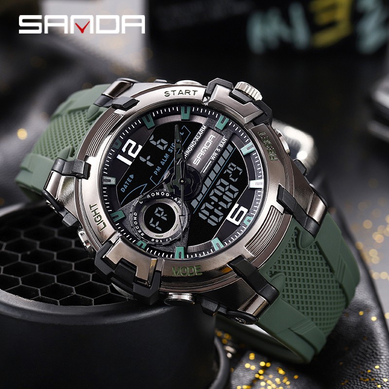 SANDA Relógio esportivo masculino relógio à prova d'água analógico luminoso militar moda LED digital multifuncional