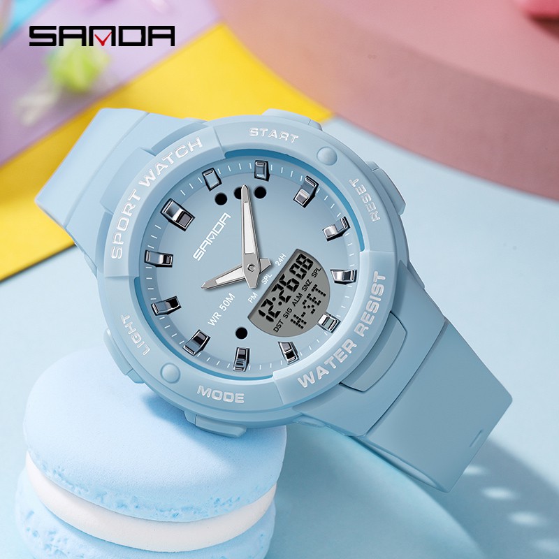 Sanda Relógio feminino à prova d'água para mulheres luxuosas e multifuncionais com cronógrafo luminoso ao ar livre