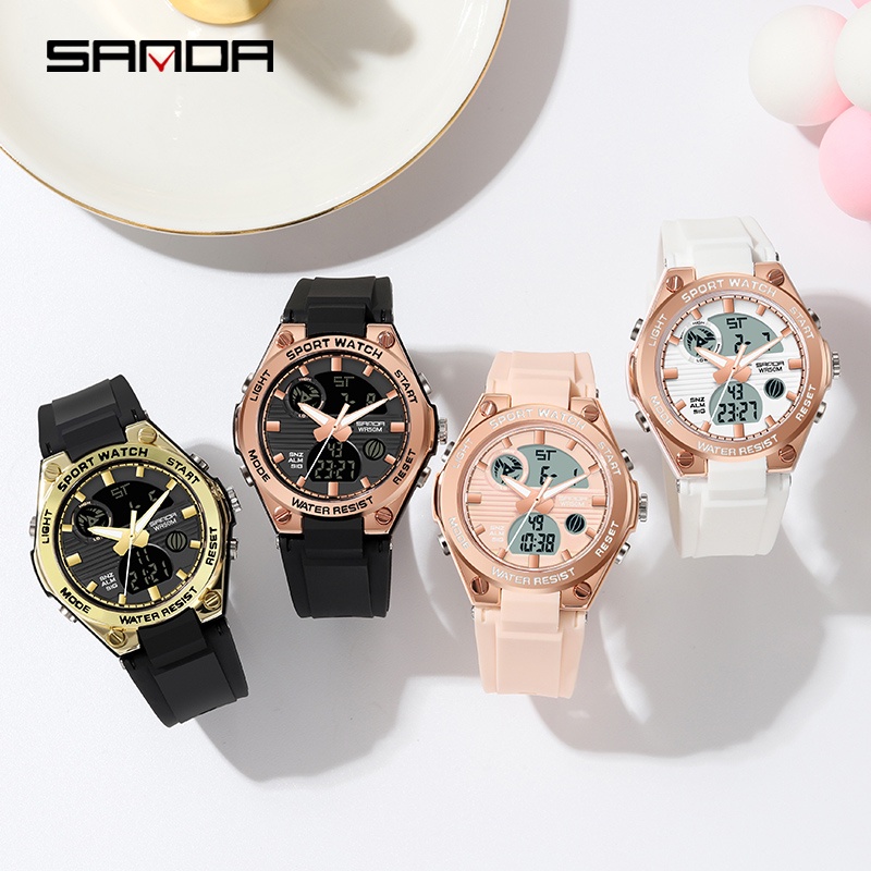 SANDA Relógio Feminino De Luxo à Prova D'água De Quartzo LED Com Relógio Multifuncional Para Natação
