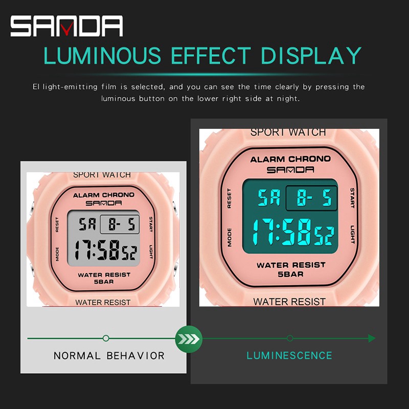Sanda Relógio feminino relógio esportivo multifuncional à prova d'água para mulheres