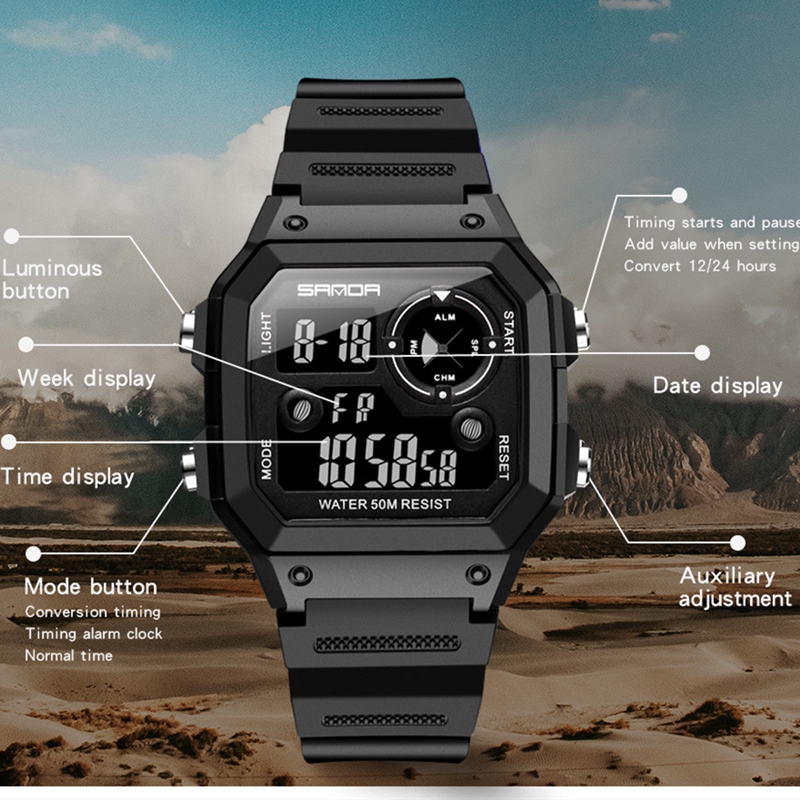 SANDA Relógio Masculino LED De Moda Para Corrida Esportiva Digital Relógio à Prova D'água 418