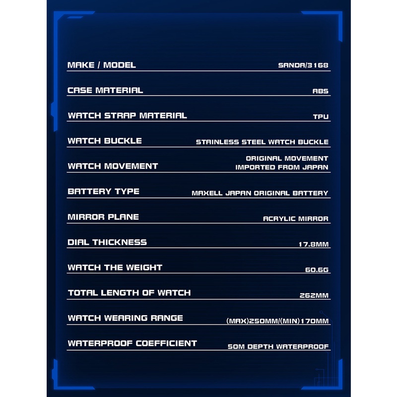SANDA Top Relógios De Luxo Masculino Militar Relógio De Pulso Esportivo À Prova D'água Duplo Display 3168