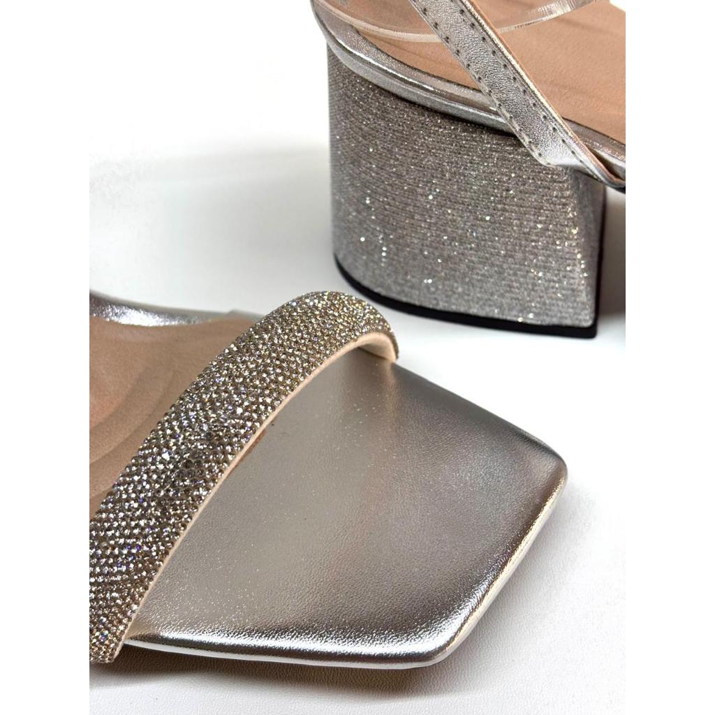 Sandália Ana Marie Salto bloco 7 Strass Salto Gliter
