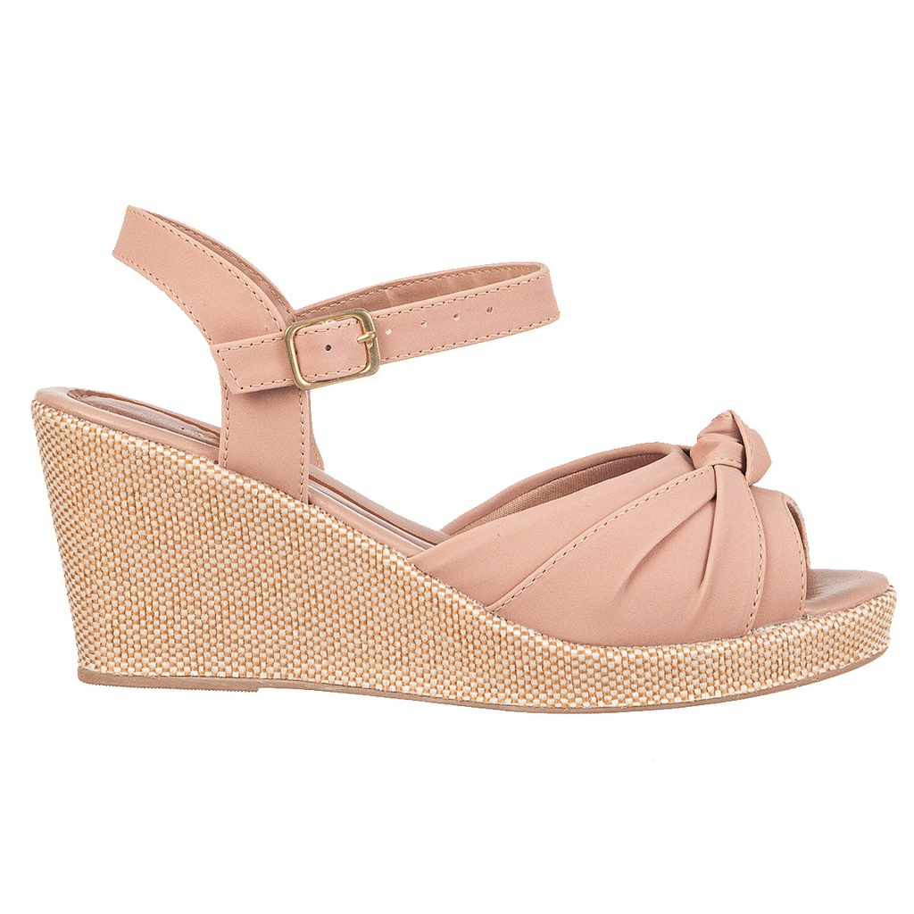 Sandália Anabela Feminina Confortável Nó Frontal Salto Corda 8cm Leve Casual Preto Nude