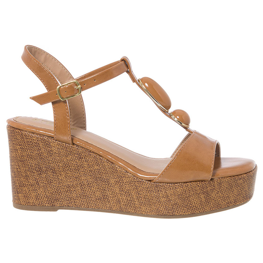 Sandália Anabela Feminina Salto Médio Plataforma Juta Espadrille Boho Chic Pedraria Rafia Conf Verão