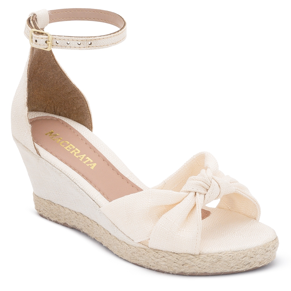 Sandália Anabela Off-White Macerata Sola Corda Salto Alto Tendência Verão Ref: 700