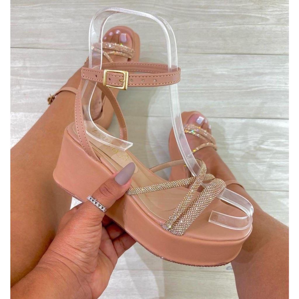 Sandália Anabela Plataforma De Strass Moda Verão Tendência 2025 Confortável