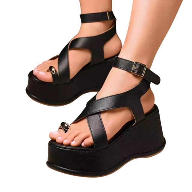 Sandália Anabela Preta Feminina Plataforma Alta Estilosa Confortável