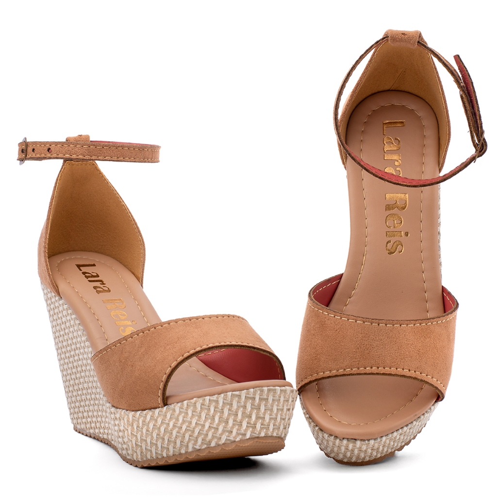 Sandália Anabela Salto Plataforma com Fivela Feminina Lisa de Luxo com Calcanhar Fechado