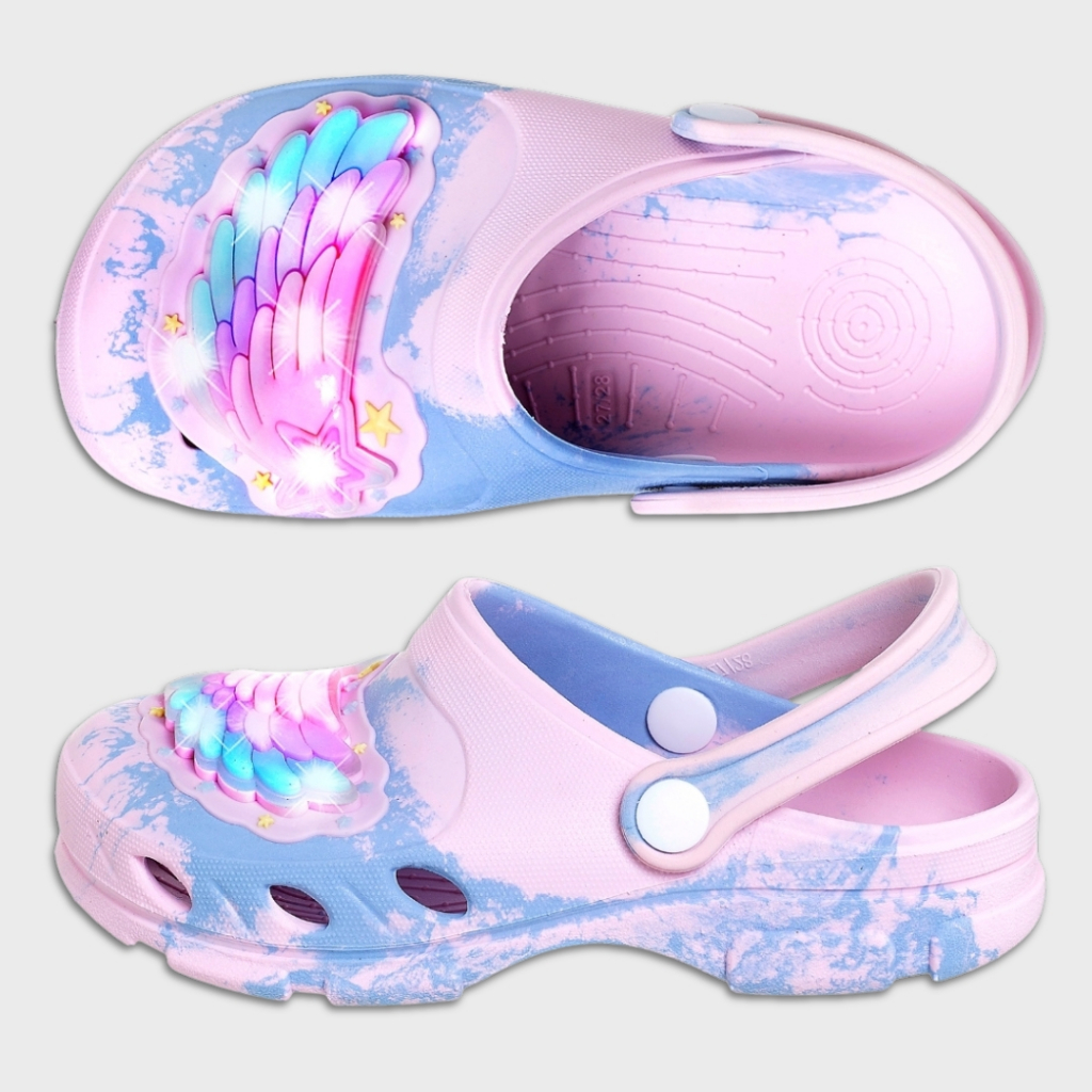 Sandália Babuche Infantil Feminino Asas Colorida Rosa Com Led Luzinha Pisca Divertido Meninas