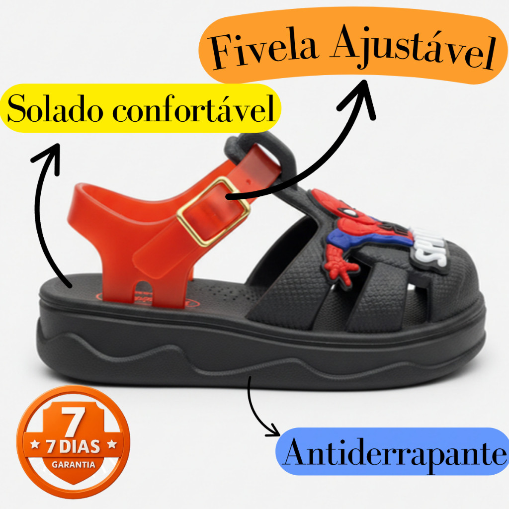 Sandália Babuche Infantil Homem Aranha Menino Bebe Confortável e Antiderrapante Pequenos Passos