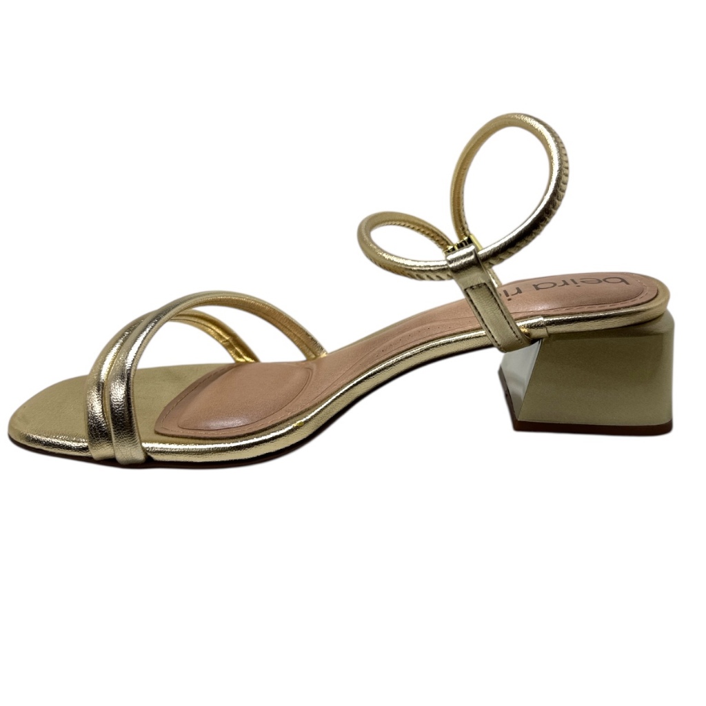Sandália Beira Rio Salto Bloco Metalizada Tiras Finas Dourada/Prata/ Festa Conforto