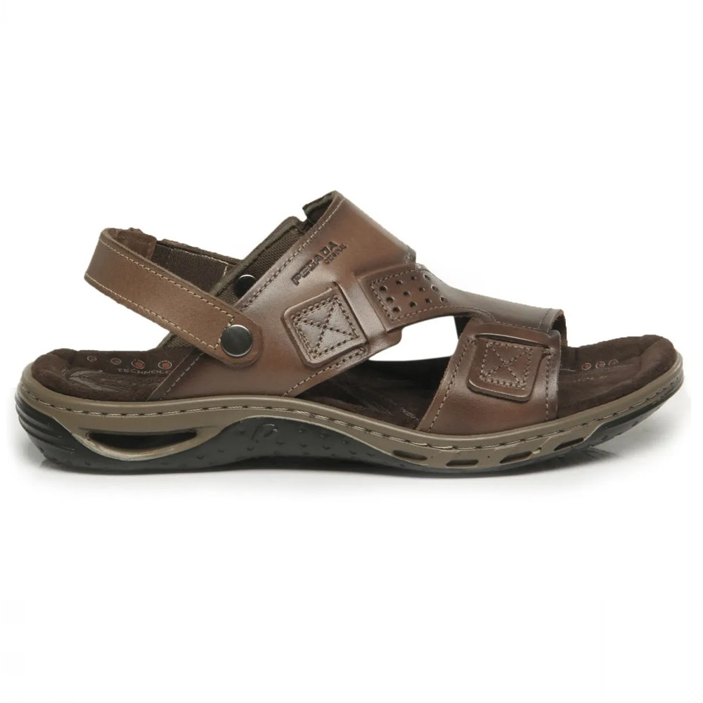 Sandalia Chinelo Masculino Pegada Couro Leve Tiras Macia Confortável Original