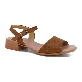 Sandália Confortável em Couro legítimo USAFLEX - SALTO CANELA