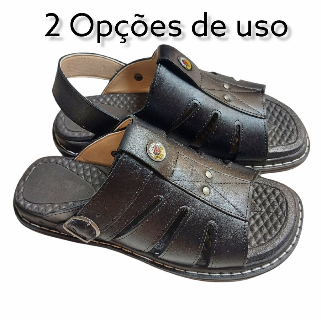 Sandália Couro Masculina Chinelo Masculino Anatômico Confortável 2 formas uso Sándalia para Dirigir