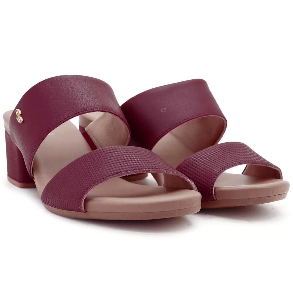 Sandália Couro Usaflex Tiras Feminina - Vinho