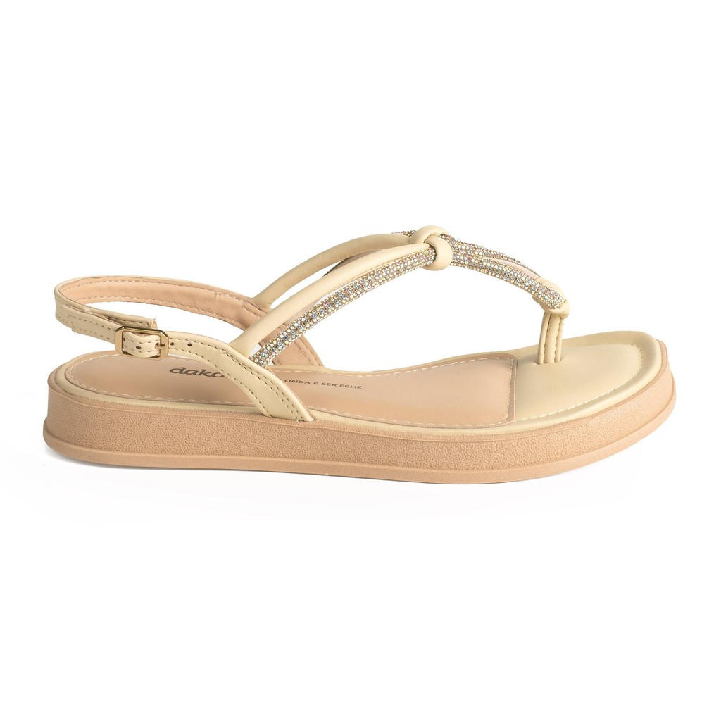 Produto marca Dakota. Eleve seu estilo a um novo patamar com a Sandália Dakota Flatform, a escolha ideal para quem busca conforto e brilho em um único produto. Seu design versátil, formado por tiras finas e macias, abraça seus pés com delicadeza, enquanto a tira repleta de brilhos e os nós adicionam um toque de elegância e glamour a qualquer look. o fechamento com fivela no tornozelo garante um ajuste seguro, permitindo que você caminhe com confiança e estilo em qualquer ocasião. Mais que uma sandália, essa flatform é um convite a um estilo de vida leve e sofisticado. a sola de 2 cm oferece o suporte ideal para o dia a dia e momentos de lazer, permitindo que você se sinta confortável e na moda o tempo todo. Com apenas 0,595 kg, ela é a companheira perfeita para longas jornadas e eventos, sem abrir mão do conforto. Sinta-se linda e pode a cada passo, com um calçado que reflete sua personalidade única. Transforme seus looks com um item essencial que une praticidade e tendências. Feita em material sintético, a Sandália Dakota Flatform é fácil de cuidar e durável, tornando-se um item indispensável em seu guarda-roupa. Peso: 0,595 kg Altura da sola: 2,00 cm