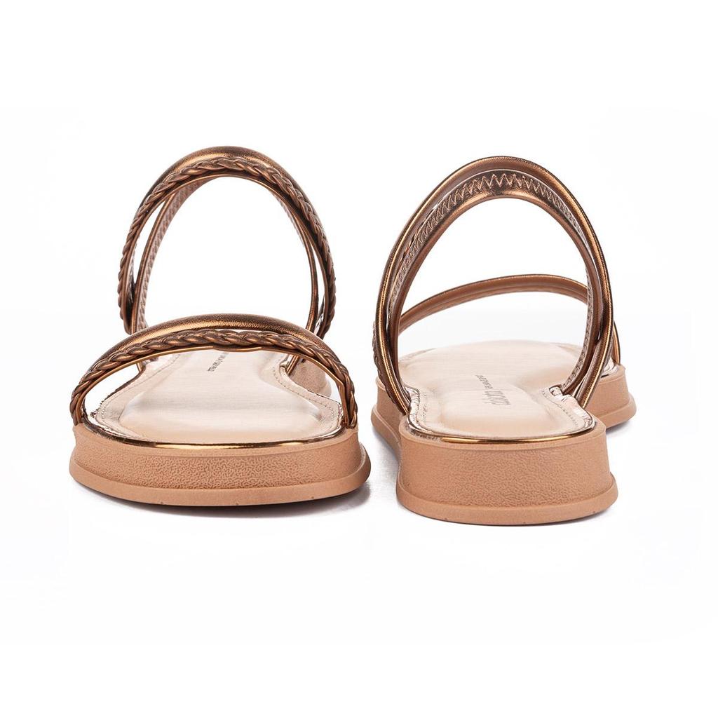 Produto marca Dakota. A Sandália Dakota Flatform da coleção Primavera/Verão 2024 é a escolha perfeita para quem busca um calçado confortável, estiloso e prático e está disponível na cor metalizada. Com um design moderno e minimalista, o modelo se destaca pelas suas tiras finas e tranças sobre o pé, que criam um visual único e cheio de personalidade, além do calce fácil por não ter fechamentos. a plataforma de 2 cm de altura garante conforto para você usar a sandália durante todo o dia. Ideal para complementar looks em diversas ocasiões, você pode combinar a sandália com jeans skinny e blusa básica para um look casual e descontraído. Já para um look romântico, combine a sandália com um vestido leve e fluido, ou então com uma calça de alfaiataria e blusa social para um look sofisticado! Peso: 0,589 kg Altura da sola: 2,00 cm