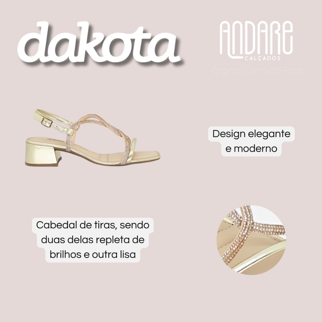 Sandalia Dakota Salto Bloco Conforto Feminina Tiras Brilho Original