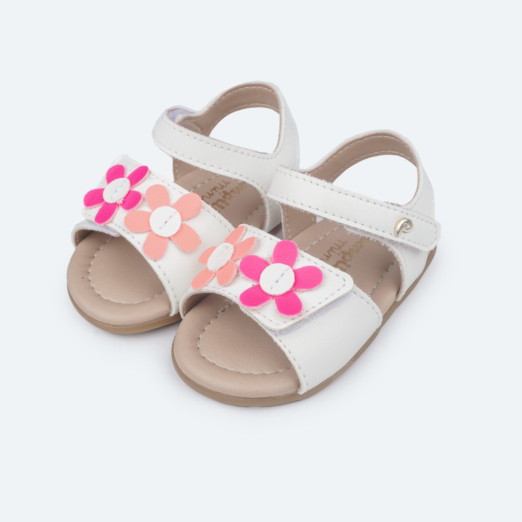 Sandália de bebê feminina em sintético dourado com aplicação de flores 3D na parte frontal, uma fofura. Sandália com palmilha forrada e enchimento de espuma, dando conforto aos pezinhos sem interferir no desenvolvimento natural. A sandália infantil feminina é fácil de calçar através de velcro na tira superior e também na parte da frente, facilitando o dia a dia da mamãe e possibilitando ajuste! O solado é emborrachado e flexível, deixando as nossas bebês com mais confiança e segurança nos primeiros passinhos. Aposte! Sandália de bebê desenvolvida especialmente para as meninas usarem desde o nascimento. A sandália fica linda com vários looks, em especial com vestidos! Use para festas, batizado ou para o dia a dia. Veja modelos de roupa infantil clicando aqui! Clique aqui para ver uma variedade de produtos infantis da Pampili!