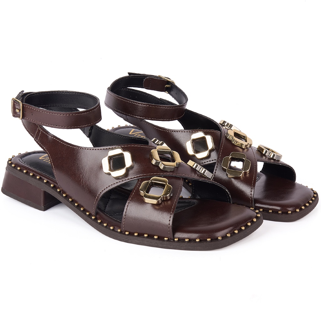 Sandália de Salto Baixo com Apliques dourados Casual Vitrine shoes boho chic