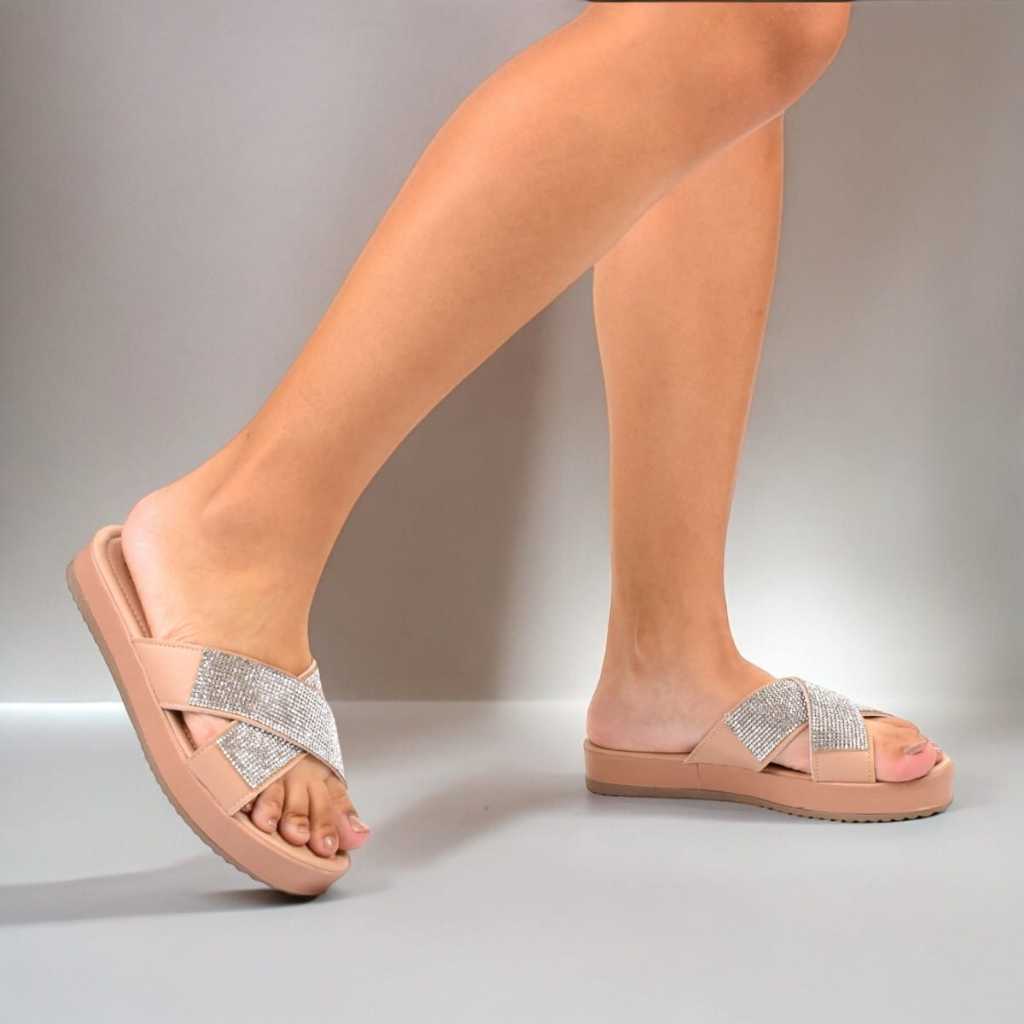 Sandalia De Strass Casual Confortável Tamanco Gáspea X De Brilho