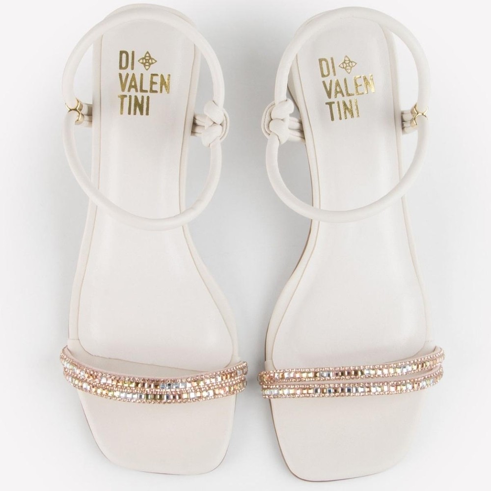 Sandália Di Valentini Ava Tiras Strass Salto Bloco - Off White