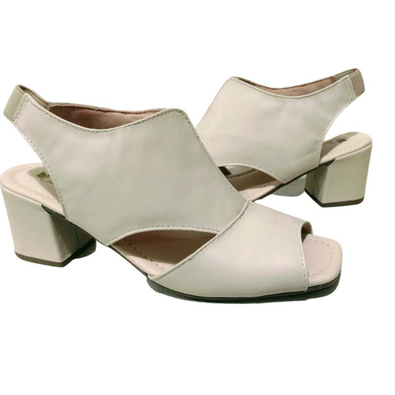 Sandália em couro Salto bloco com elástico calce fácil.