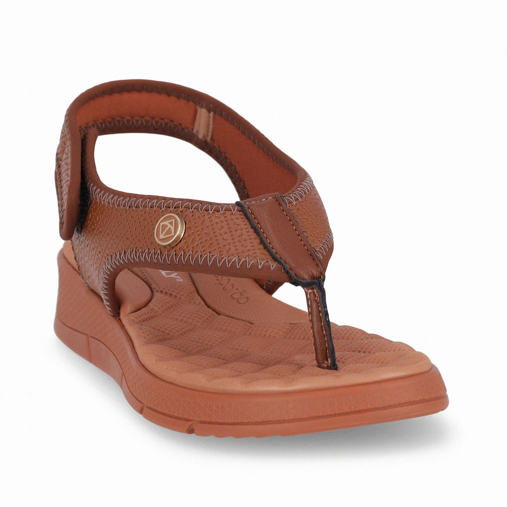 Sandália Esporão Anabela Médio Ocre com Pinhao
