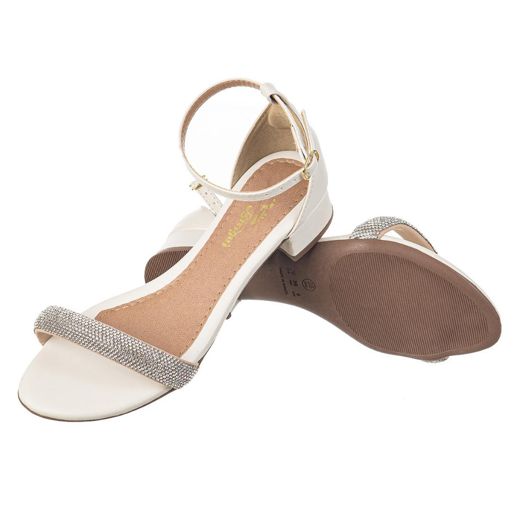 Sandália Fem Salto Baixo Traseiro Fechado Strass Via Birigui