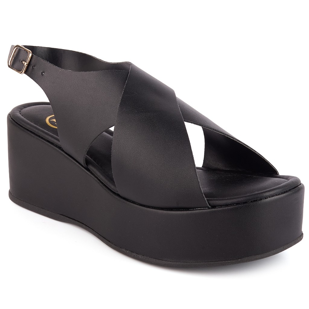 Sandália Feminina Anabela Majux Tiras Largas Cruzadas em X