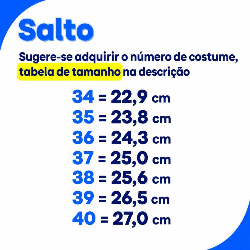 Tabela rápida para você comparar este item com outros similares de Saltos e Tamancos dentro do nosso catálogo.