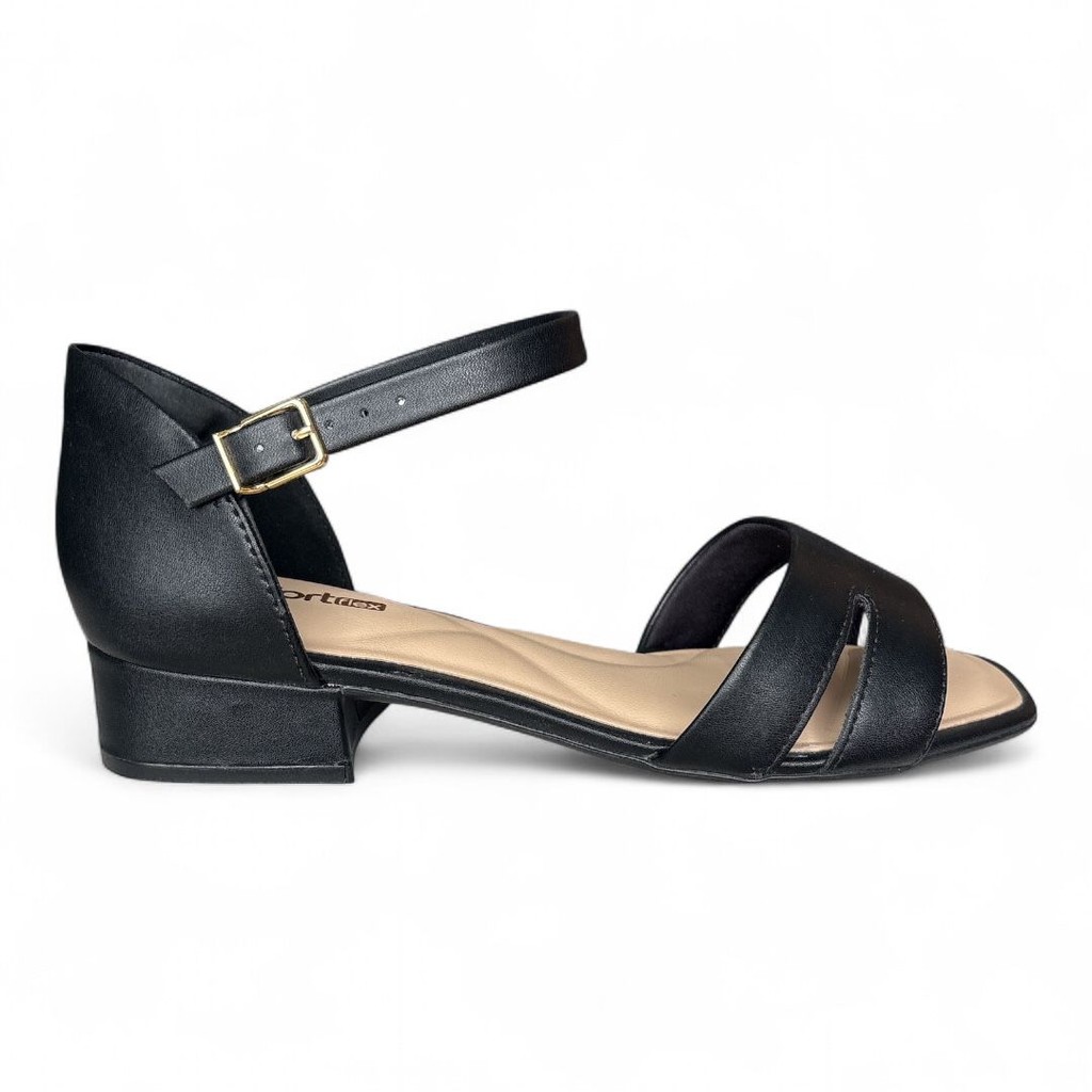 Sandália Feminina Baixa Tira Ankle Strap Preta Comfortflex 2555406-3