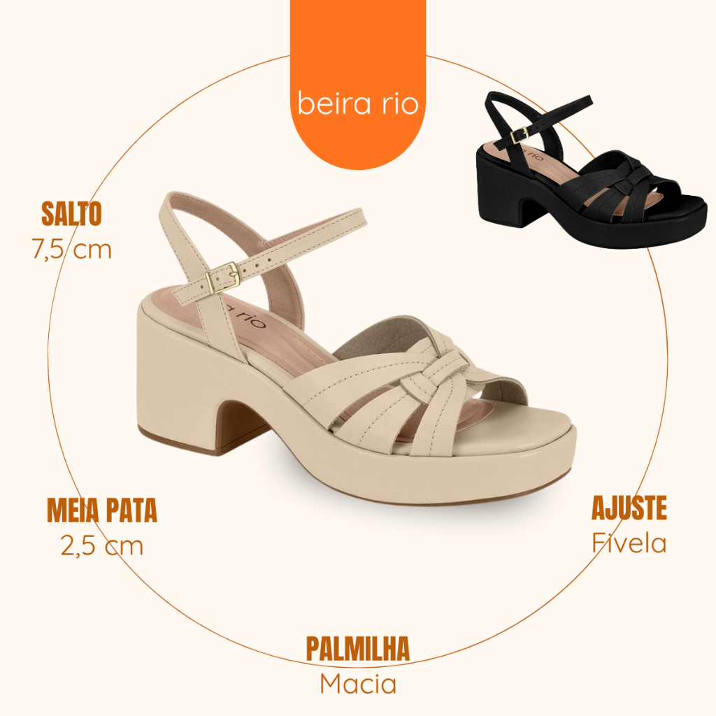 Sandalia Feminina Beira Rio Meia Pata Salto Bloco 9cm Tira Trançada Social Original